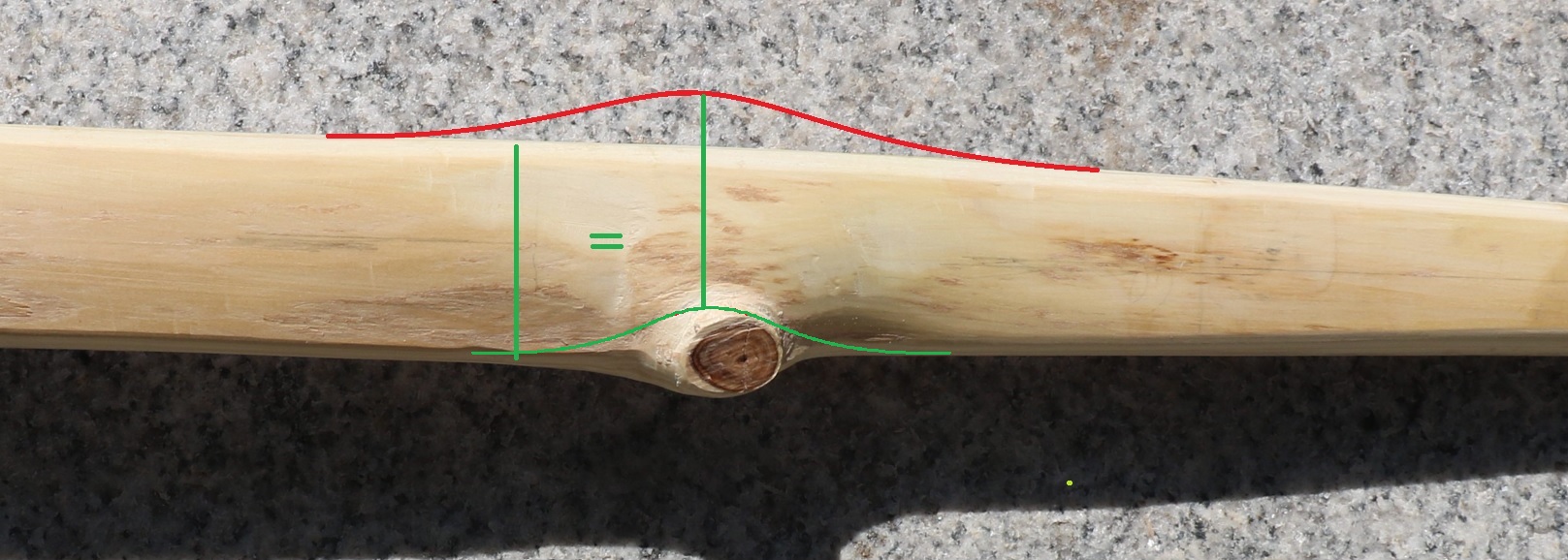 Hallo Leute, ich habe die geschenkte Garteneibe angefangen in einem ELB angehauchten Design zu bauen und bin jetzt beim Tillern. Der Stave ist am Rücken in alle Richtungen verdreht und hat sehr viel Splint. Sorgen macht mir aber der große Ast in dem unteren WA. Die erste Frage dazu, ist ob ich der Ast so bleiben kann oder kann da noch was von der Breite weg?