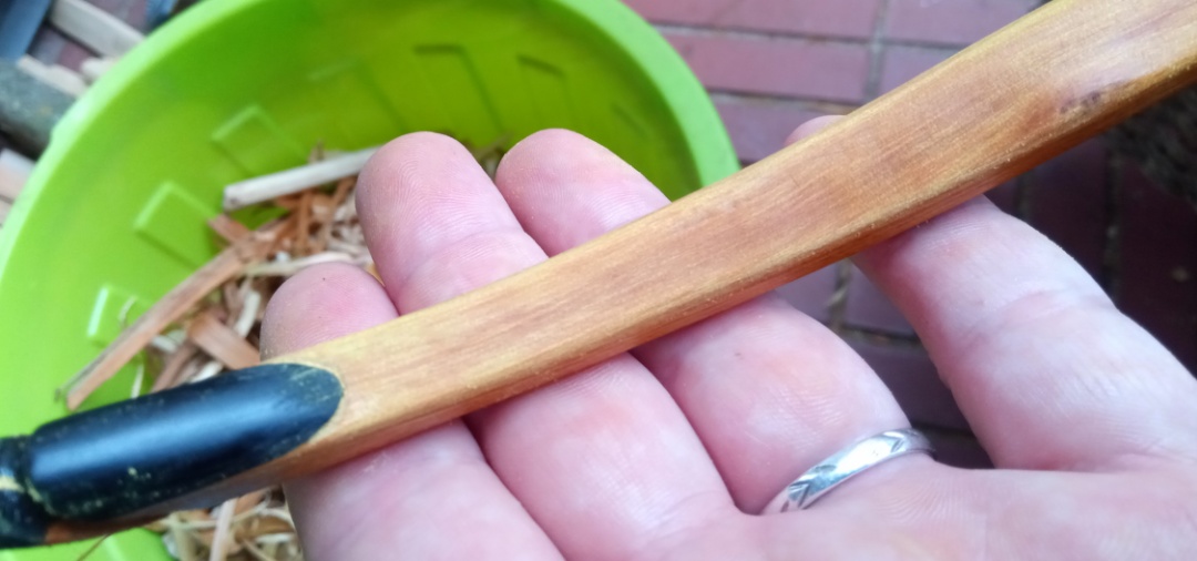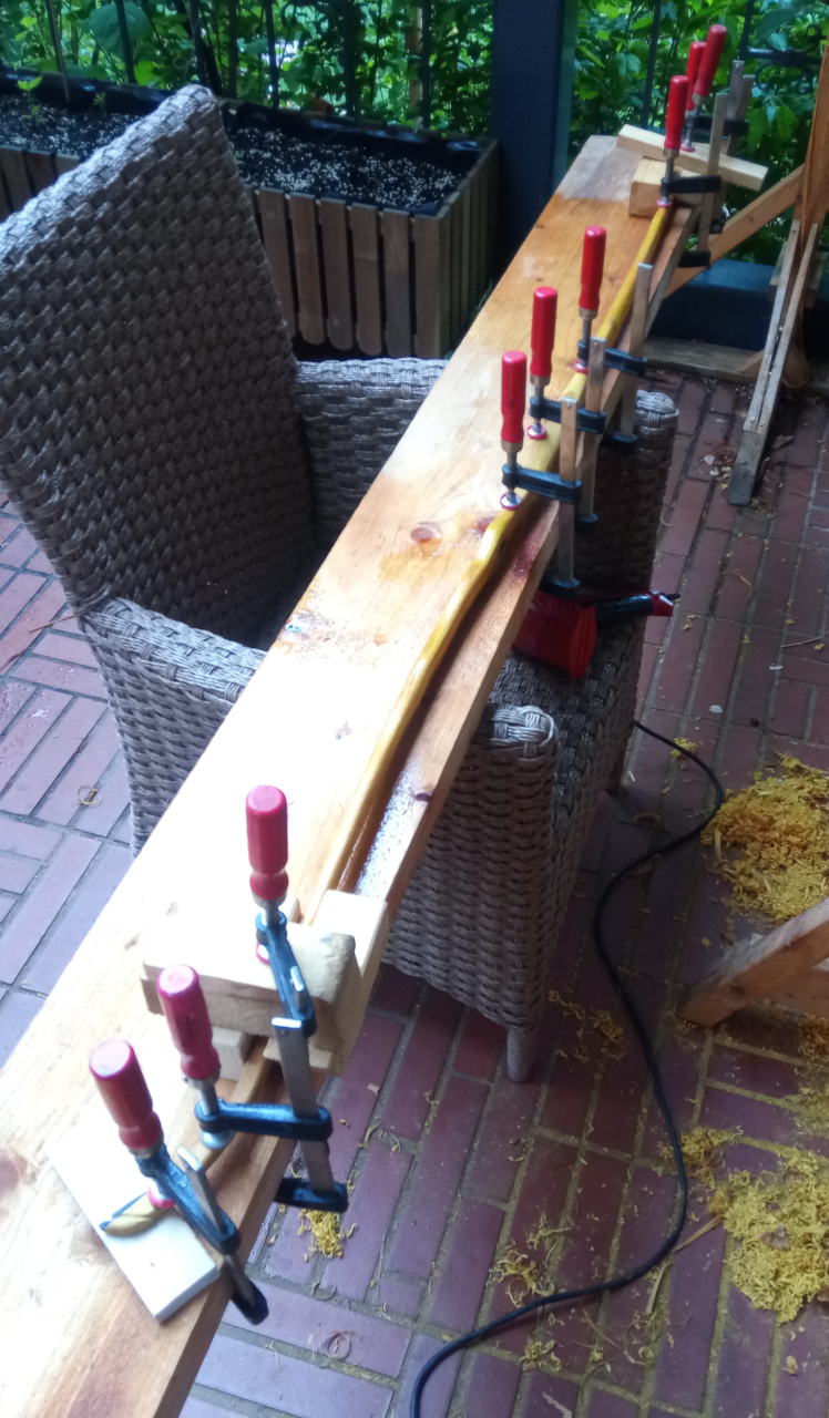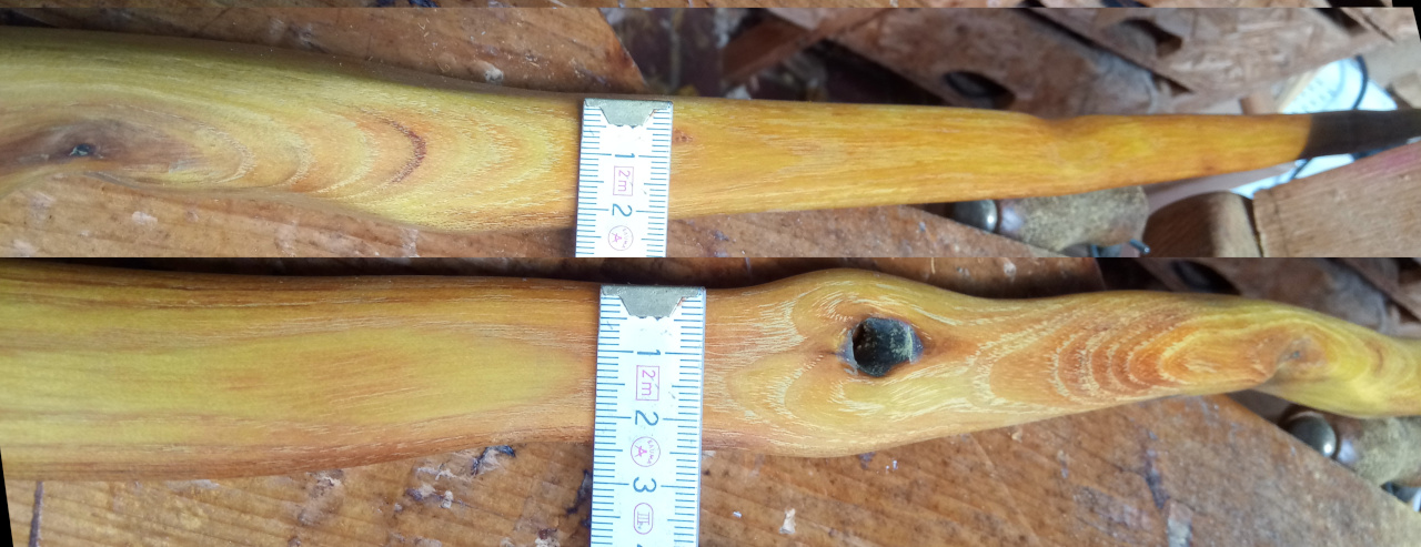 da meine Holzvorräte bis auf zwei Osage-Staves stark geschrumpft sind (nur noch Reste, die ich lieber zersäge als mich zu stressen) und ich aus den Osage-Staves möglichst viel herausholen möchte UND weil fatz erwähnte, dass es auch etwas schmäler geht, habe ich mich an den ersten Osage-Stave gemacht und möglichst Arbeitsschritte dokumentiert, die ich hier vorstellen möchte. Inklusiver aller häßlichen Details, möglicher Fehler und nicht unbedingt geradlinigem Ablauf (ok, durch Vorstellung etwas geordnet)