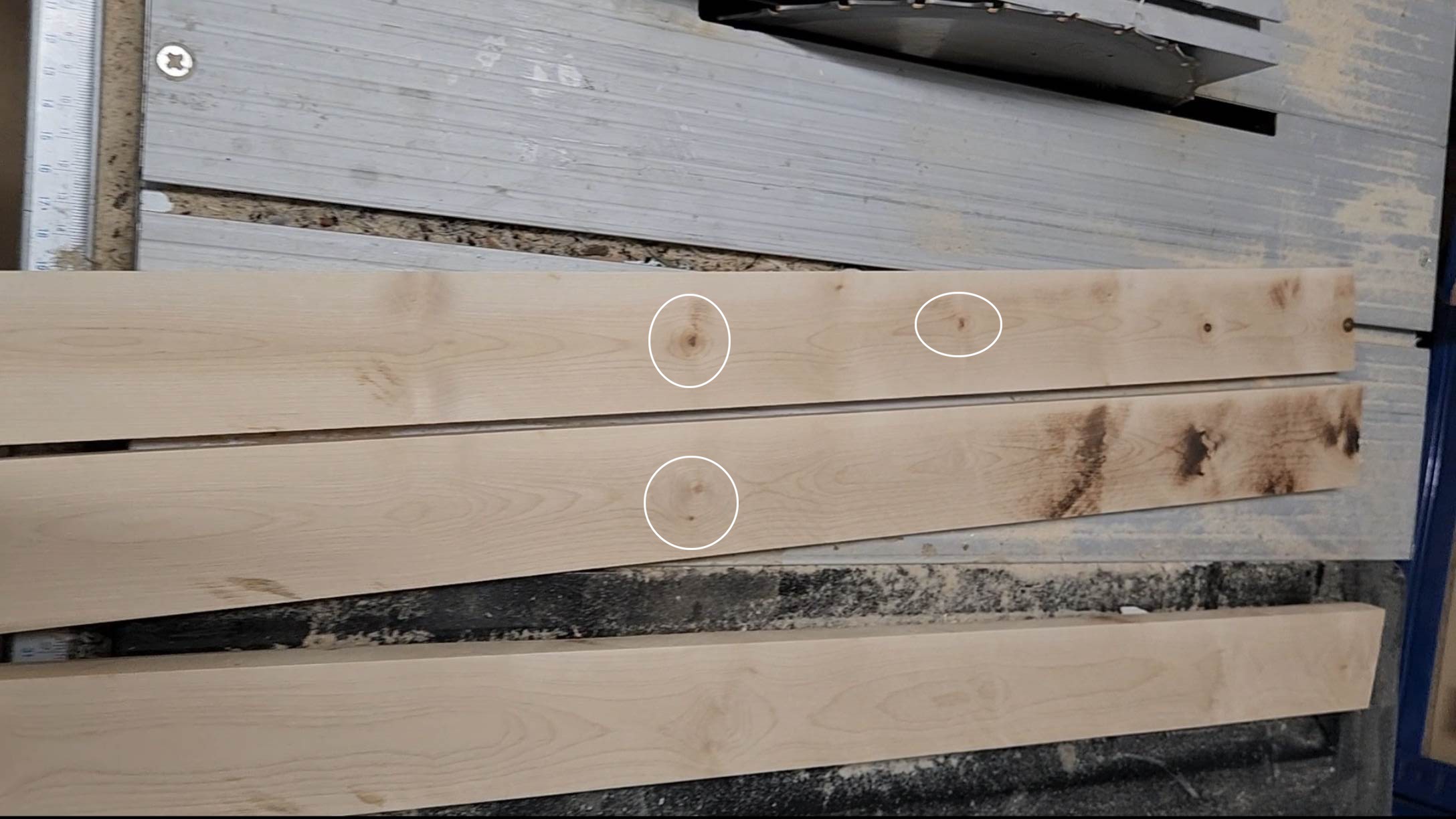 Auf dem Foto der Ahorn-Leisten nimmst du aber nicht die beiden linken. Selbst bei der rechten Leiste scheint noch eine Aststelle zu sein.