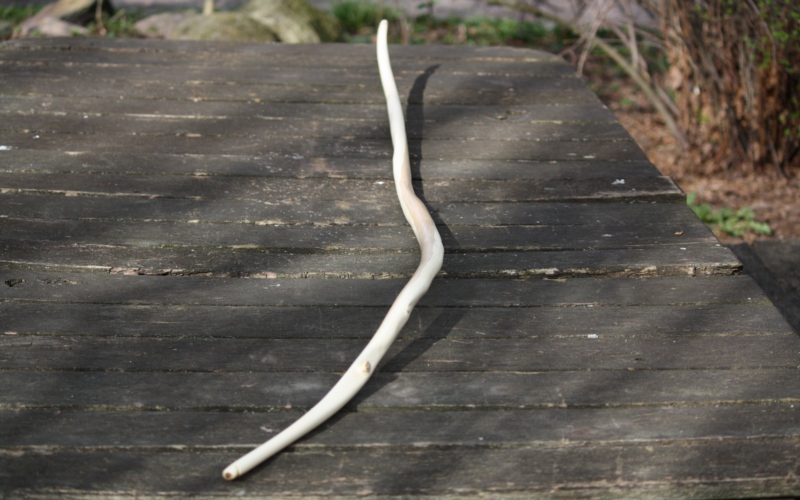 ausgehend von der Idee,dass sich Holz ja irgenwie biegt,habe ich aus Neugier und Jux mal einen frischen,stark drehwüchsigen Flieder über die Bandsäge geschraubt,ihn dann nah an die Endform gebracht und für ein paar Wochen trocknen lassen.Als keine wesentliche Gewichtsabnahme mehr zu verzeichnen war,habe ich ihn mir angeschaut und folgendes überlegt: