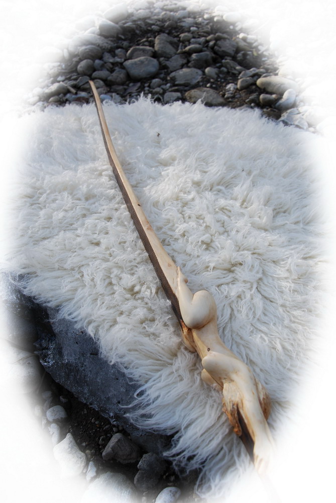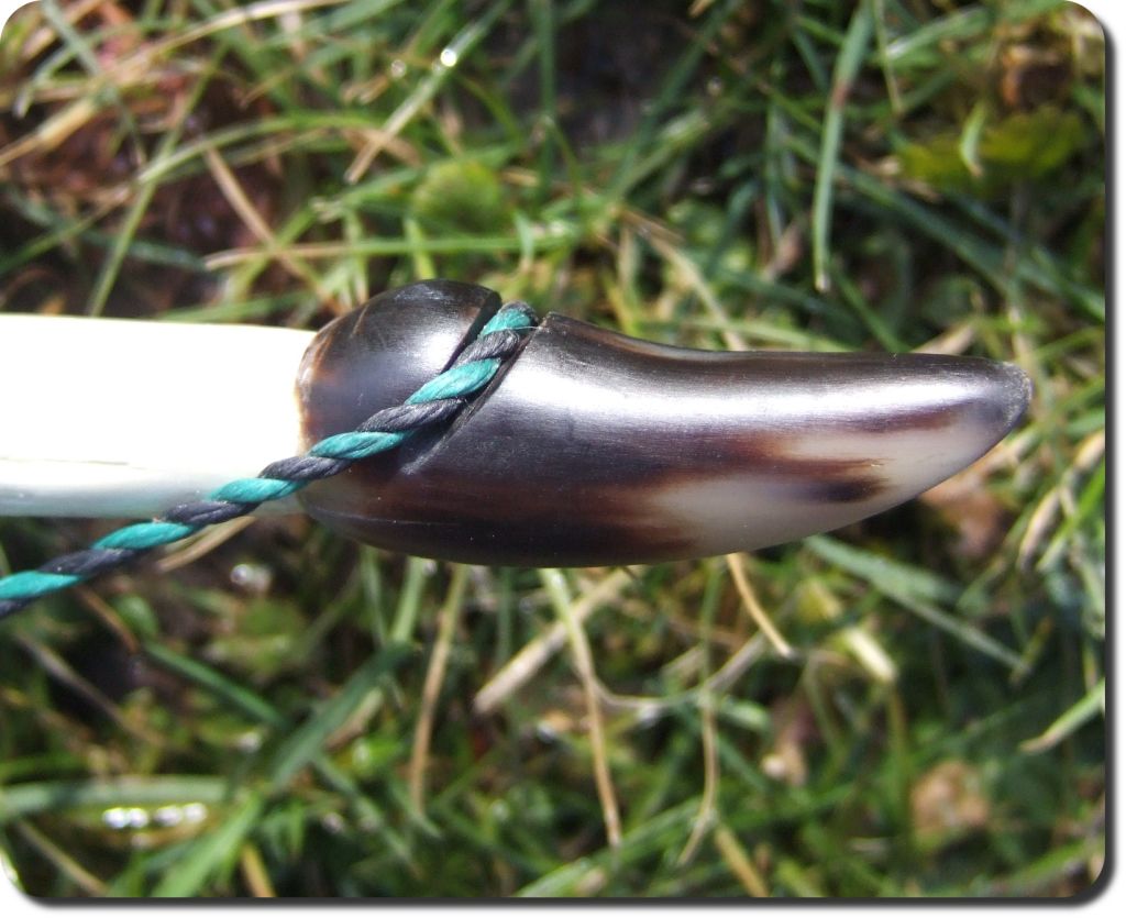 Vollauszugaufgespannt..und entspanntDetails: oberer Nock, Drachenzähne aus Rinderknochen.. von der anderen SeiteGriff hat einen Riss bis zum Markkanal - das muss man doch irgendwie nutzen...Bauch..und Rückenansicht das wars zu DRAGONOK ;ich hoffe es fehlt nix
