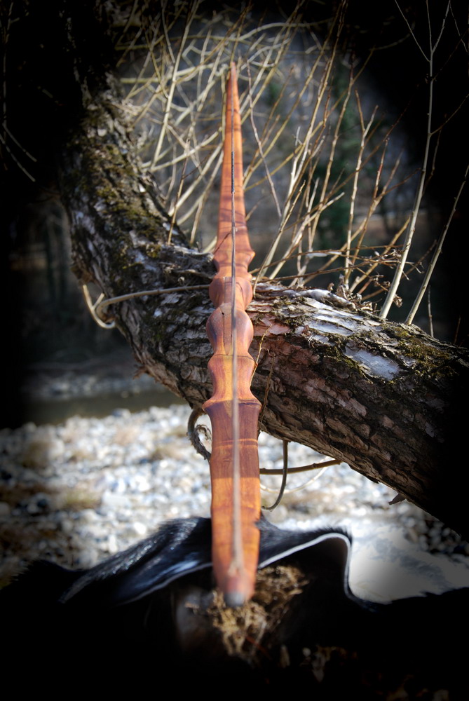 Es sind für mich einige Neuerungen dabei. Es ist mein erster Bogen aus Amelanchier ovalis, mein erster Zweiteiler und der erste Bogen bei dem von Anfang an den Einsatz von Klebstoff beschlossen war und es ist mein erster Bogen mit einem Drehwuchs von ca. 250° je Meter.