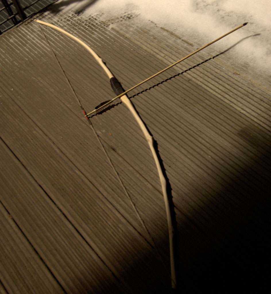 Hier im Auszug von 28". Der Bogen wurde nur auf kurzen Distanzen geschossen, ist dabei sehr treffgenau. Der Auszug ist sehr gleichmäßig