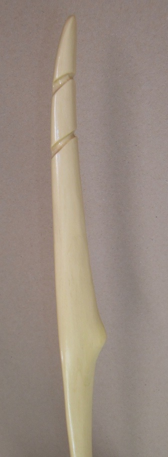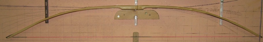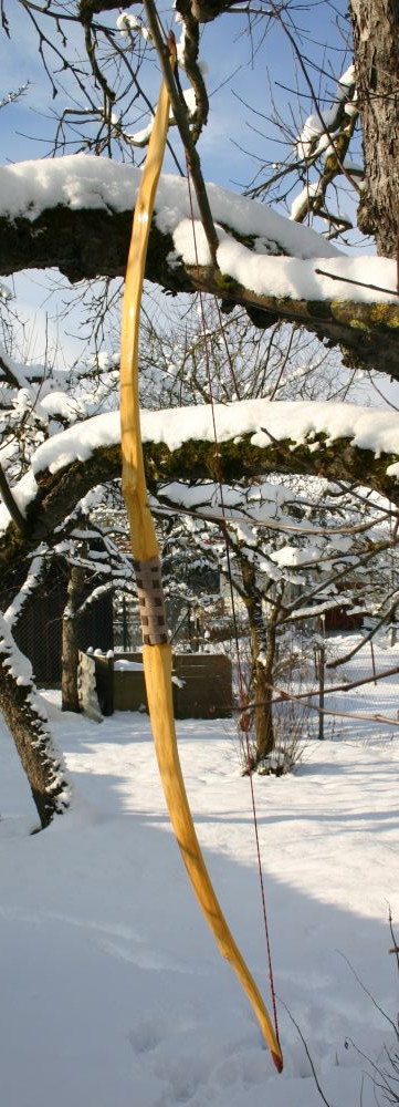 Abb. 1: Der Bogen wurde deflex im Griff verleimt, alle Krümmungen sind original gewachsen, es wurde nicht mit Hitze gebogen