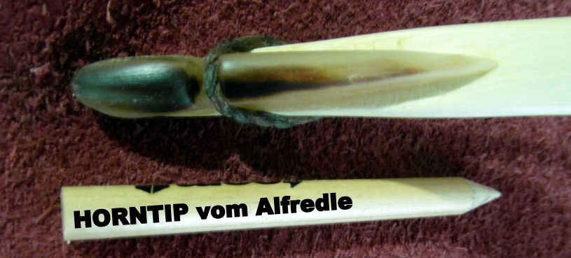 Nockenden aus Büffelhorn mit Dübel in den Markkanal