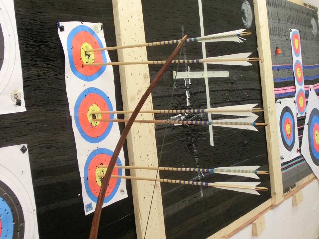 Also das Paket geschnappt und zur Halle gefahren, ausgepackt und gestaunt, Pfeile geholt, Bogen aufgespannt und warm gezogen, erstmal die schweren Hillpfeile genommen und die ersten Schüsse, einfach geil.