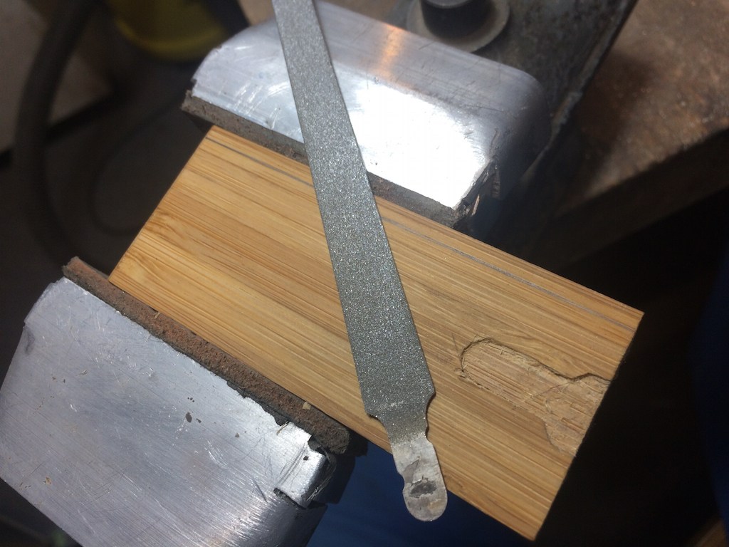 Als Griffmaterial dient ein Stück eines Bambus Schneidbretts aus der Restekiste.