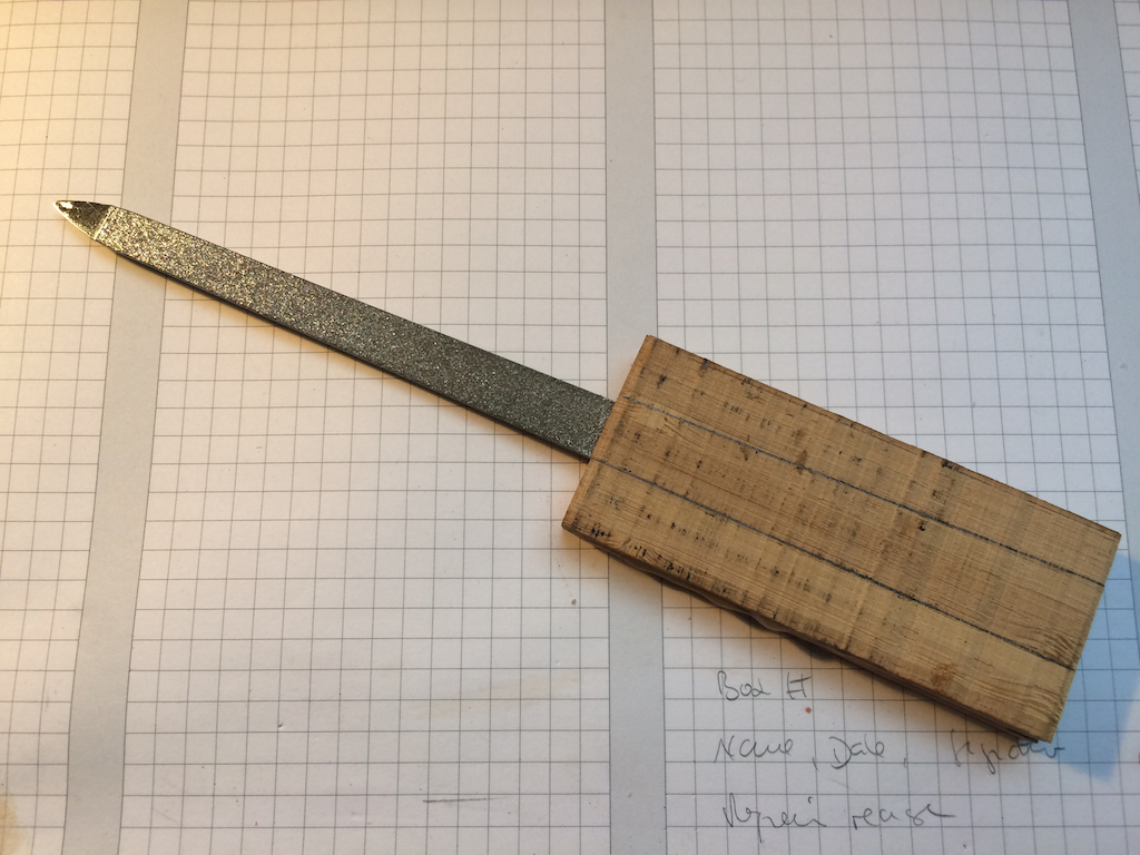 Was macht Mann dann? Ich habe sie auf meinen Schreibtisch gelegt und mal so 2 bis 5 Wochen nachgedacht und entschieden: OK ich bastle einen Griff wo es doch die Lieblingsfeile ist. Ich habe auch schon unnötigere Dinge repariert.