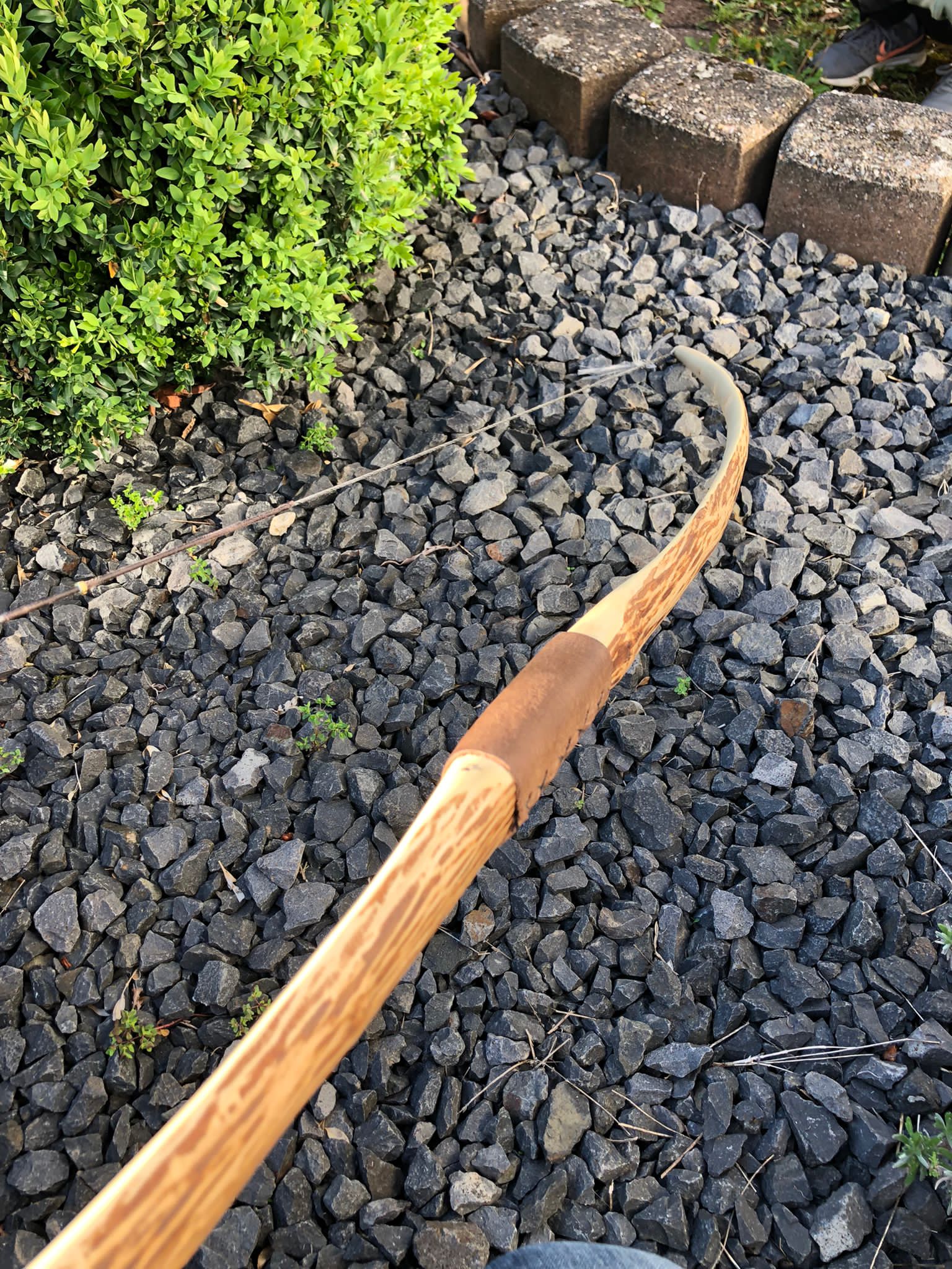 Find das schönste am Hartriegel immer das Muster mit den verbliebenen Bastresten, deshalb habe ich hier gern auf Overlays oder Sonstiges verzichtet. Gegen Ende hab ich mir noch überlegt ob ich Hornoverlays draufpack, dass ich die Tipps noch schmäler machen kann, aber so geflällt er mir einfach optisch besser.