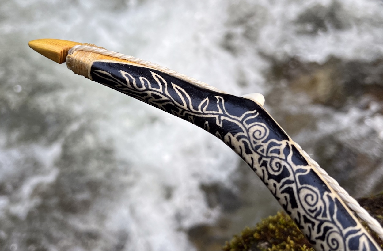 Tips mit Sehnenwicklung unterhalb der Nocke, geklebt mit Fischleim