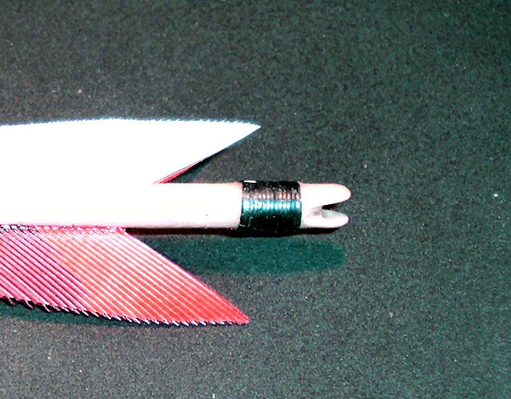 Wie soll ich denn bitte einen Schaschlikspieß befiedern. Die Kiele sind doch bald doppelt so dick wie der Pfeil ^^