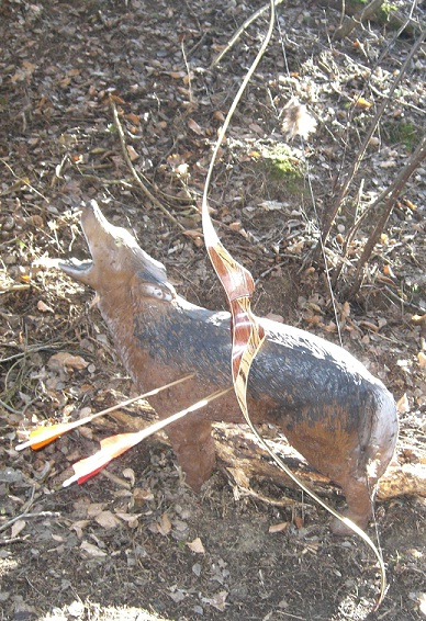 ist nicht mein Ding. Also hab ich aus mehreren Bögen die Vorzüge (längerer Riser, 64",statischer Recurve, Pistolengriff usw...) kombiniert und das ist nach diesem Jahr rausgekommen.