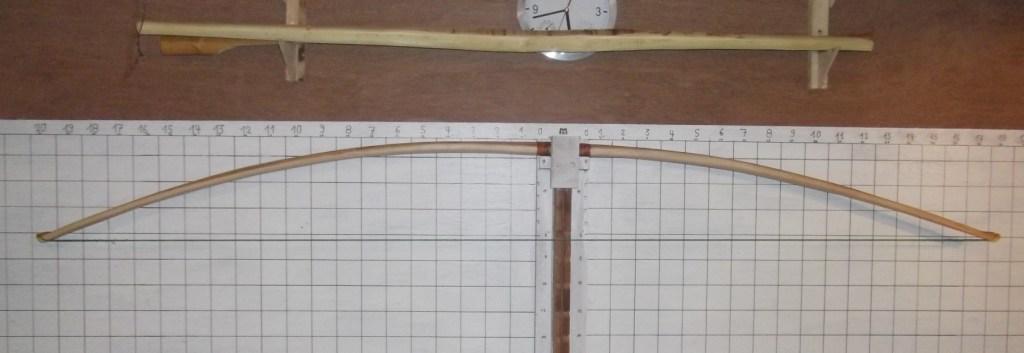 Ergebnis...: Die Sehne hat eine ziemlich starke rechtslastigkeit, sprich sie läuft led. 1- 1 1/2 cm an der rechten Griffaußenkante vorbei, so daß ich bei diesem Bogen tatsächlich gezwungen bin, den wie ein "normaler" Linkshänder zu schießen... sprich mit dem Pfeil Rechts über den Handrücken...