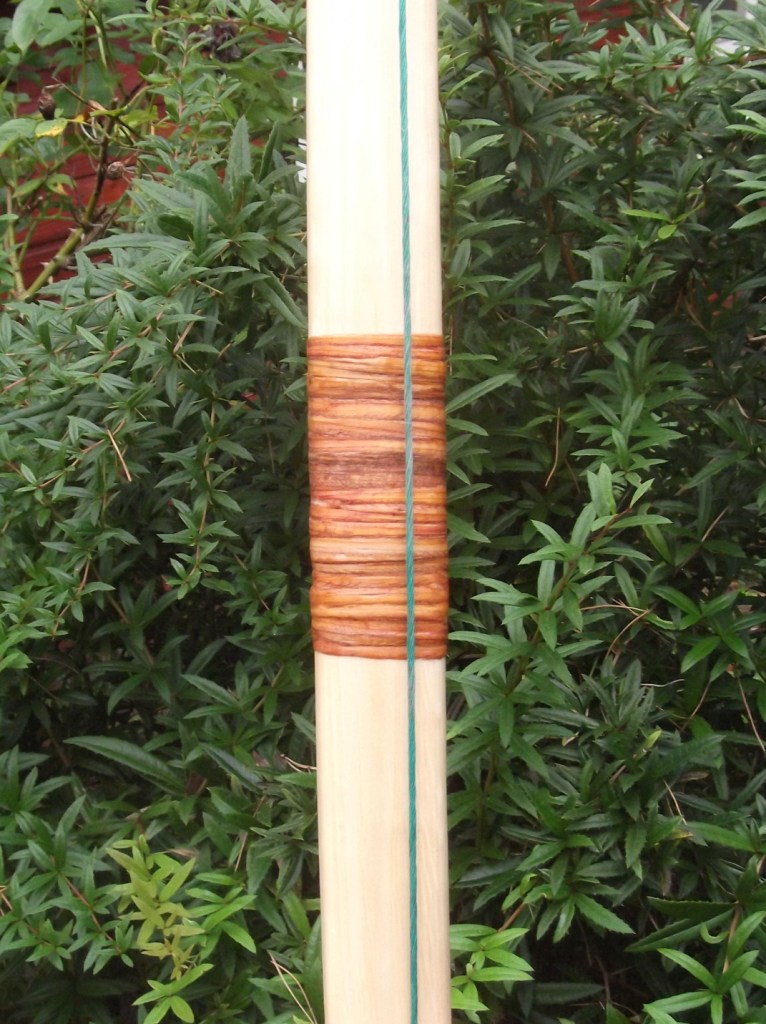 Griffwicklung : Dünne Hobelspäne (lang) aus Eibenkern mit Sek. Kleber aufgebracht