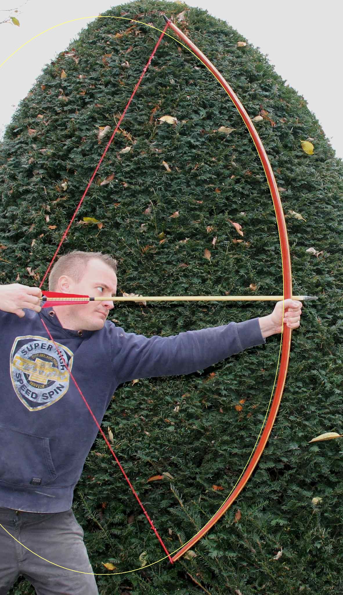 Da ich keine "Knicke" endecken konnte, habe ich mal ne Elipse reingelegt: Der untere biegt halt was stärker, die letzten 15cm vor den Nocks steif.