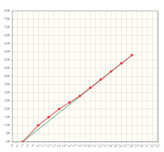 Das erreichte Zuggewicht ist 53# bei 28'' womit ich vollauf zufrieden bin.