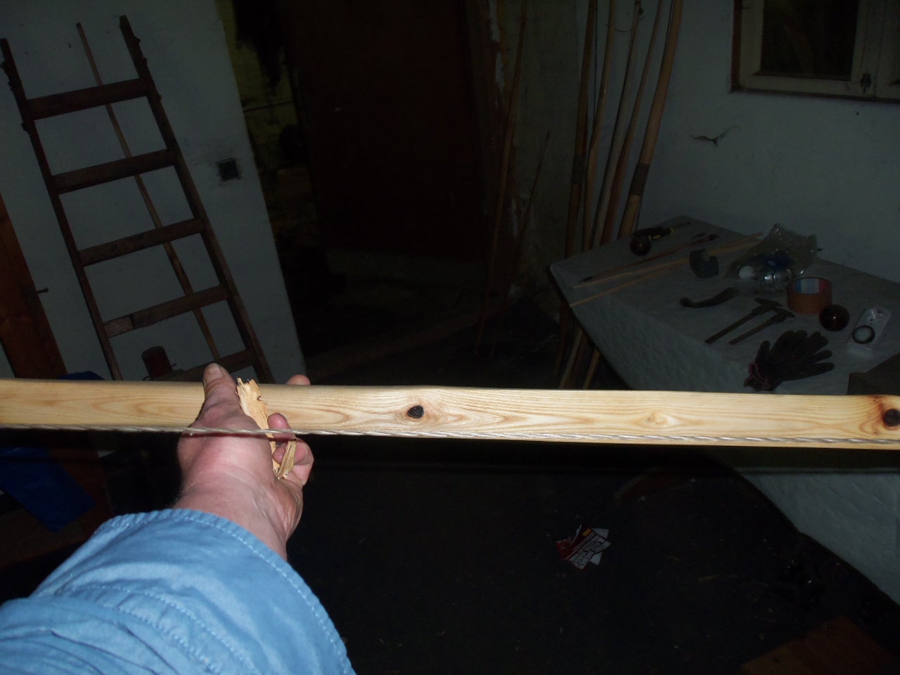 Insgesamt ist der Bogen durch die bessere Biegung aussen nach Beseitigung des Stauchrisses schneller und der obere WA runder, peitschenähnlicher geworden. Der dicke Ast in der Mitte des oWA nervt natürlich, aber die Umgebung runder zu machen, könnte , meine ich den Bogen kosten. Wie das ganze jetzt getoastet und geölt sich verhält, gibts morgen Mittag.