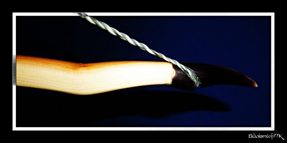 Ein sehr schöner Bogen mit viel Charakter, ein wahrlich hüpcher Purche. Darf ich mal eine vom Präsithread abweichend Frage stellen, und zwar: Du machst da immer so ein hübsches Logo auf Deine Bögen. Kann ich davon ausgehen, daß dies auch die Pfeilposition markiert? Ich frage mich nämlich immer bei den Bögen ohne sichtbaren Griff, wie man weiß, wo man genau die Hand hintun muß. Noch dazu kann ich bei den Sehnen nie einen Nockpunkt erkennen. Meine Vermutung ist, daß Du es dem zukünftigen Schützen überläßt, selbst die Hand- und Nockpunkt-Position festzulegen. Stimmt das? Oder gibst Du da schon etwas vor?
