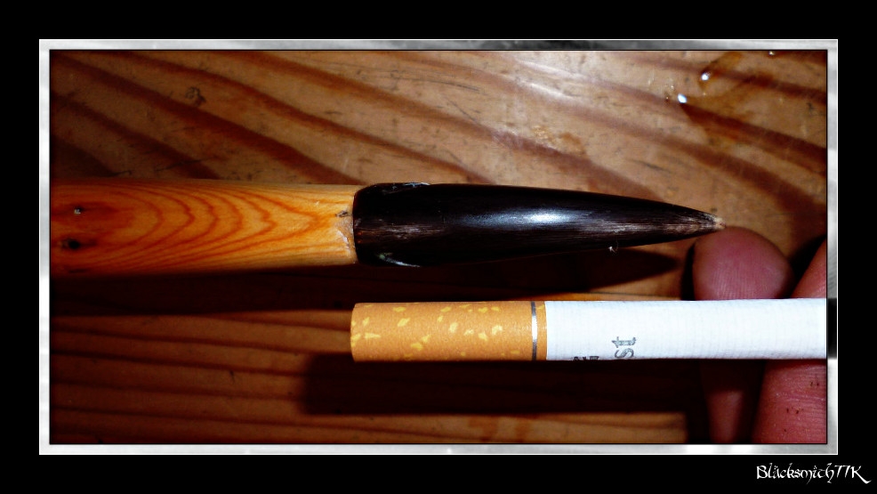 Bei Blacksmith's Bögen fänd ich es passend, wenn die 'Zielscheibe' als Logo dann einen Sprung hätte...bei den Zuggewichten tu mir immer die Scheibe leid. :-D