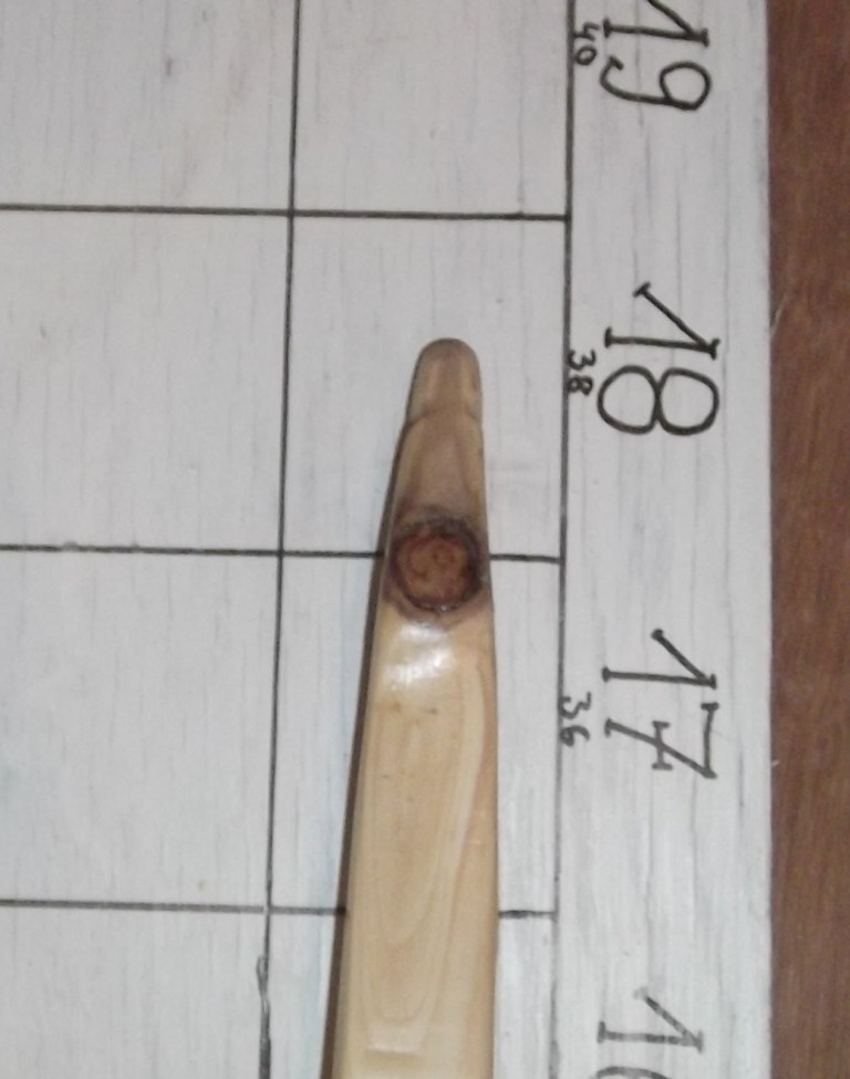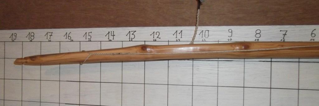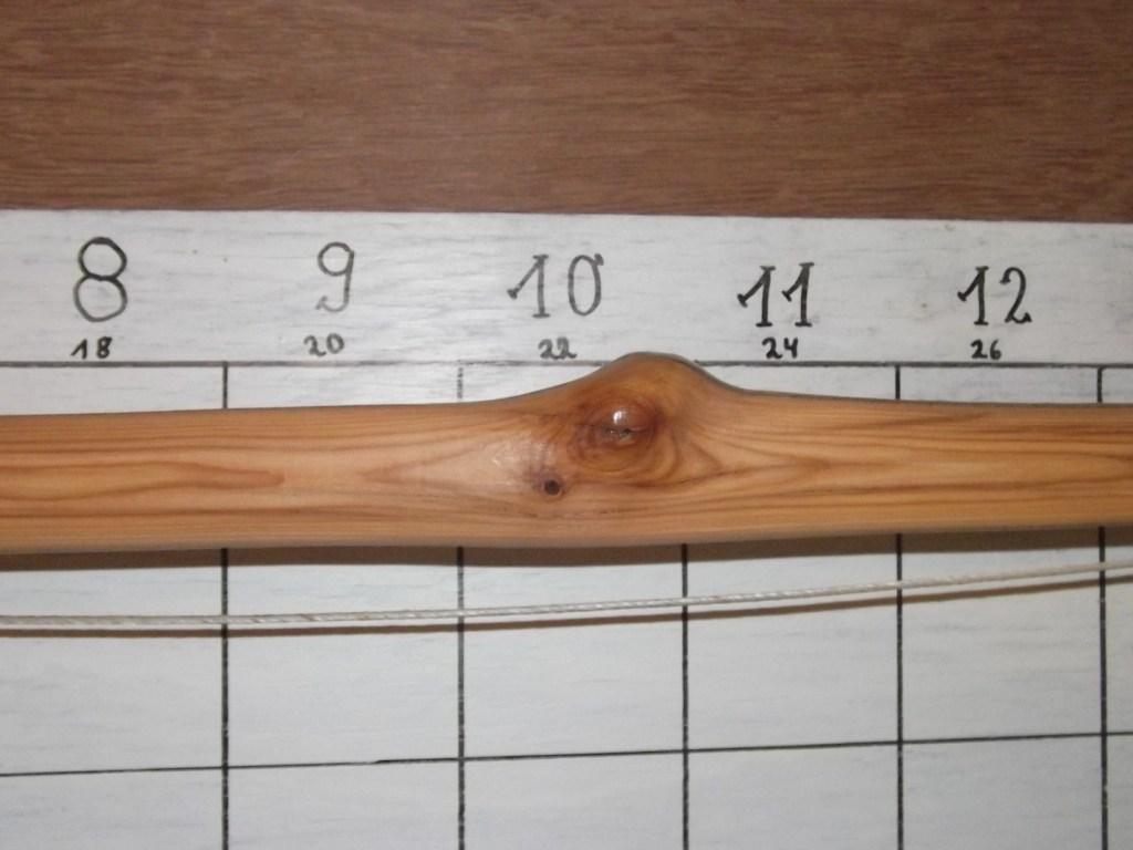 Als ein Werkstatthüter vom vorletzten Jahr sollte das eigentlich ein >70# Bogen mit steifen Griff werden, nur mußte ich leider da schon feststellen, daß sich im oberen WA eine von diesen gemeinen, fiesen Stellen versteckt hatte