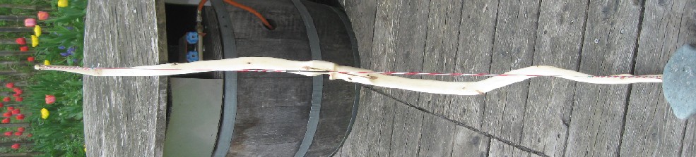 Daten, 167cm N/N, 39,5#/28", 782g, Nocks aus transparentem Kuhhorn, Sehne Dacron 12-fach flämisch gespleisst.