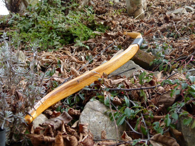 Schöne Oberfläche. Sieht schick aus. Ich glaube aber, das Du an dem Recurve im linken Wurfarm noch was tun müsstest. Die Sehnenkerben solltest Du auch nicht so eckig ausführen. Etwas länger machen und abfallend machen, so das sie sich dem Sehnenwinkel im Vollauszug besser anpassen, so das sich die Sehne da nicht mehr so an den Kanten reibt. Nicht, das Dir da mal die Sehne reißt...