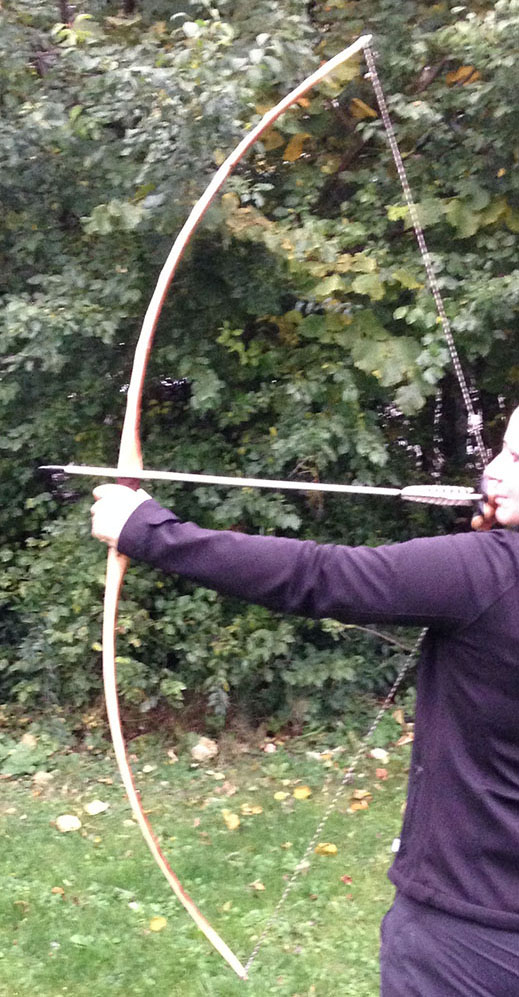 Die im Griff gerissene Schlehe vom letzten Sap-Turnier wurde doch noch ein Bogen. Das Tempern brachte die Maserung gut zur Geltung aber keine merkliche Leistungssteigerung. Der Bogen wirft trotzdem angenehm und flott.