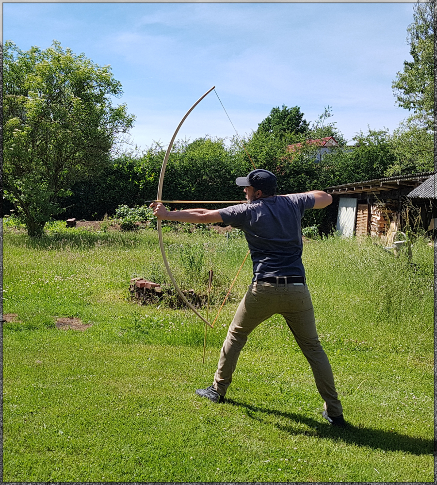 Gefinished hab ich den Bogen mit 4 Lagen Danish Oil. Ganz gezogen bekomm ich den Bogen noch nicht bin bischen eingerostet