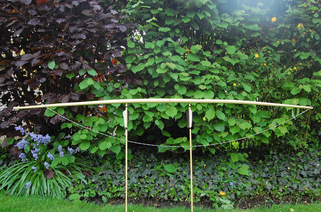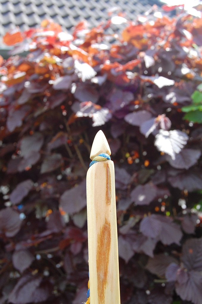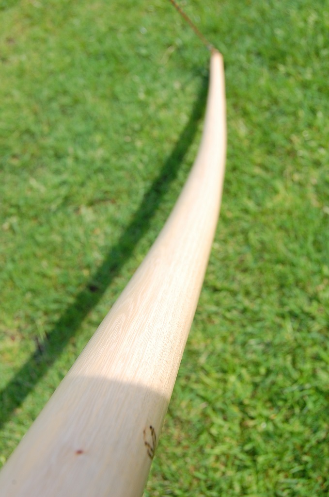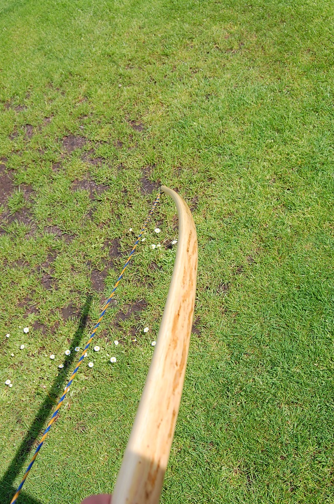 Das Bögli ist aus Bergulme, was für mich Premiere war. Auch das Zuggewicht ist eigentlich nicht meine Gewichtsklasse, macht aber trotzdem viel Spaß. Wenig Handschock und ordentlich Wumms, zumindest für meine Verhältnisse, lassen Freude aufkommen. Der Tiller ist sicherlich noch ausbaufähig, aber was solls, jeder wie er kann.