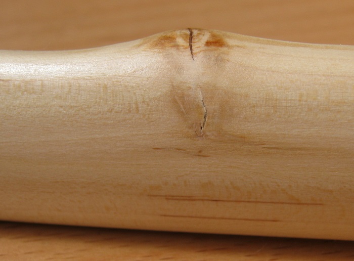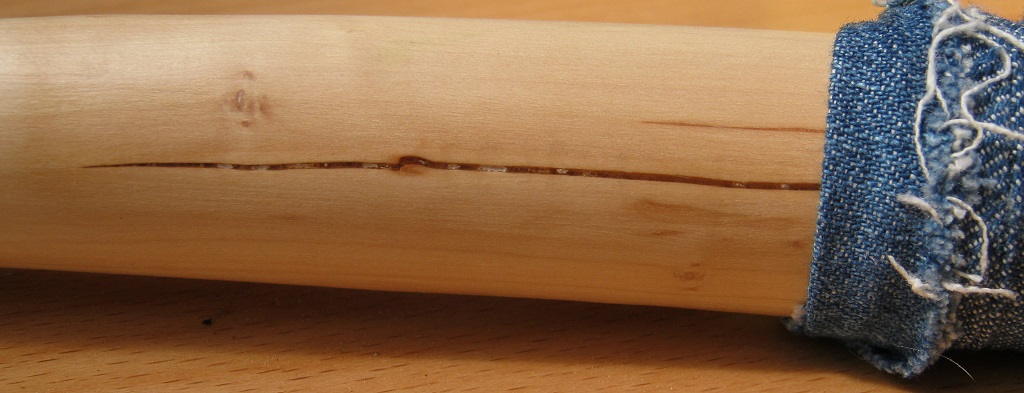 Dann, ohne Standortveränderung, Rissbildung seitlich im Griffbereich!