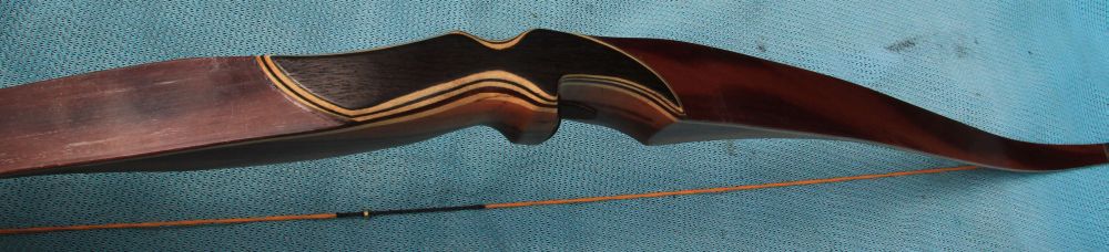 Ein Recurve mit Zwetschge Griff und Zweschge/ eräucherte Eiche Zierfurnieren. diesmal war die Zweschge auch nicht wurmstichig und ich musste nichts mit Harz infiltrieren.