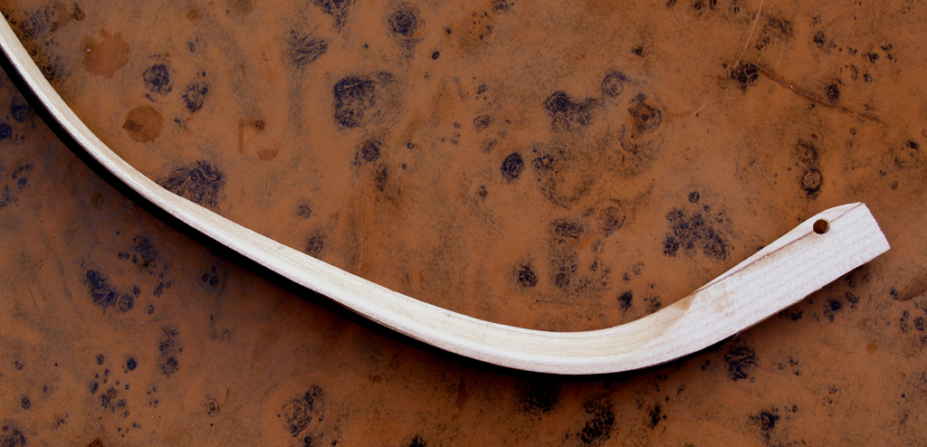 Der Bogen hatte nun eine ausgeprägte C-Form die er allerdings nach dem ersten Aufspannen und den Korrekturen teilweise verloren hat.