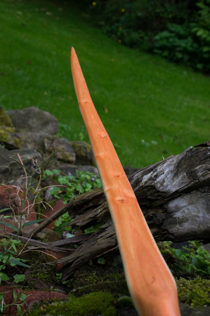 -Es ist verdammt faserig - macht keinen Spaß, mit der Ziehklinge zu arbeiten, ständig reißen kleine Späne aus. Bei bauchseitigen Aststellen, von denen dieser Bogen einige hat, wirds besonders nervig. Man muss also ne Menge schleifen.