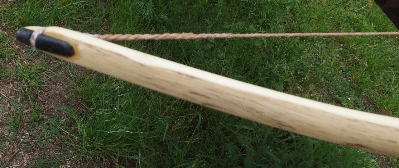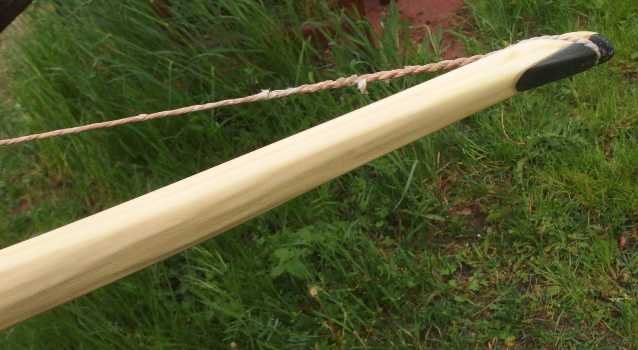 Der untere Wurfarm war lange Zeit stärker, den habe ich beim Tillern angepasst. Er ist etwa 1cm kürzer. Vom Gefühl beim Auszug (Druckpunkt) müsste er aber in etwa so stark sein wie der obere. Gestern beim Setzen des Nockpunktes habe ich verschiedene Höhen probiert und der Pfeil schrammte nirgendwo über die Hand. Ich denke daher, dass der untere Wurfarm stark genug ist.