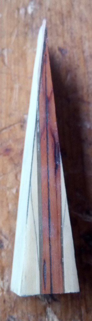 Beim diesjährigen Sap-Wettbewerb habe ich ein Pfaffenhütchen gebaut, das nach dem Einschießen leider zerbrach, weil es griffnah zu wenig bog. Außerdem baute ich einen 50#-Hasel, der zwar gut schoß, aber oben leider eine kleine Schwachstelle hatte, die immer mehr nachgab, wurde also auch nichts. Die Bogenreste standen dann die ganze Zeit rum. Da mir jetzt die Rohlinge ausgehen, hatte ich die Schnapsidee, einen Bastard-Bogen aus beiden Hälften zu bauen, Pfaffenhütchen oben, Hasel unten. Der Spleiß hätte symmetrischer und präziser sein können, das gute Endfest 300 plus ein paar Schraubzwingen halfen aber. Beide Wurfarme habe ich dann nachgetillert. Herausgekommen ist ein Hybrid mit immerhin noch 48# bei 28" AMO (mehr sollte man auch nicht ziehen), Länge NtN nämlich nur 166cm. Arrowpass war noch vom Pfaffenhütchen dabei. Griff aus Leder gabs neu dazu, das verdeckt die meisten Teile vom Spleiß. Schießt sogar überraschend flott, die Kürze wird ihren Teil dazu beitragen. Ich bin doch froh, das ausprobiert zu haben