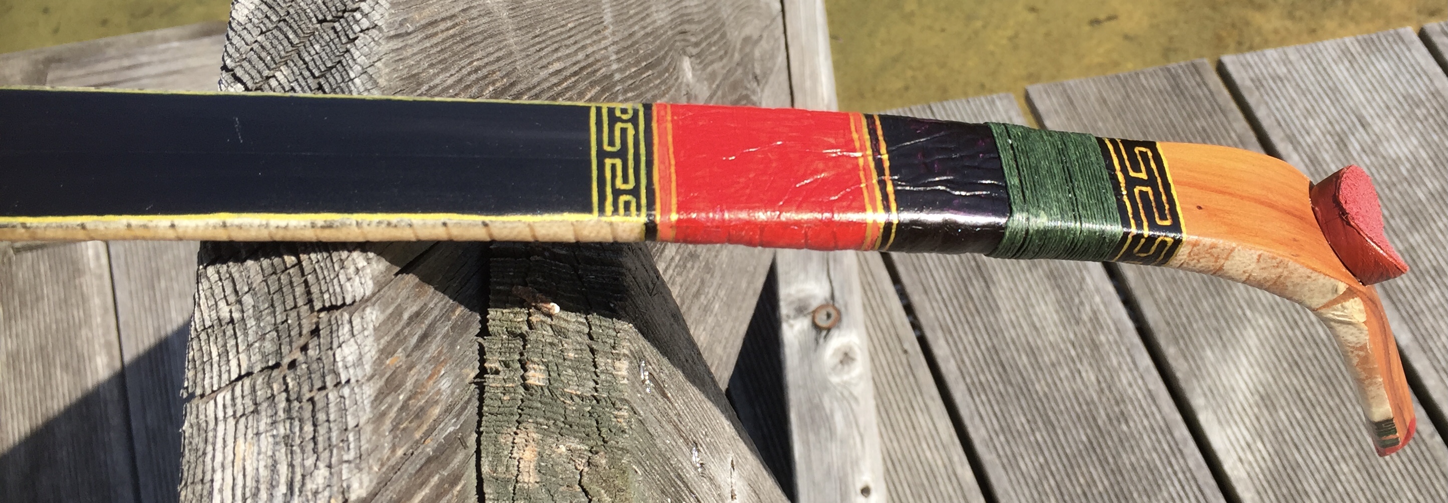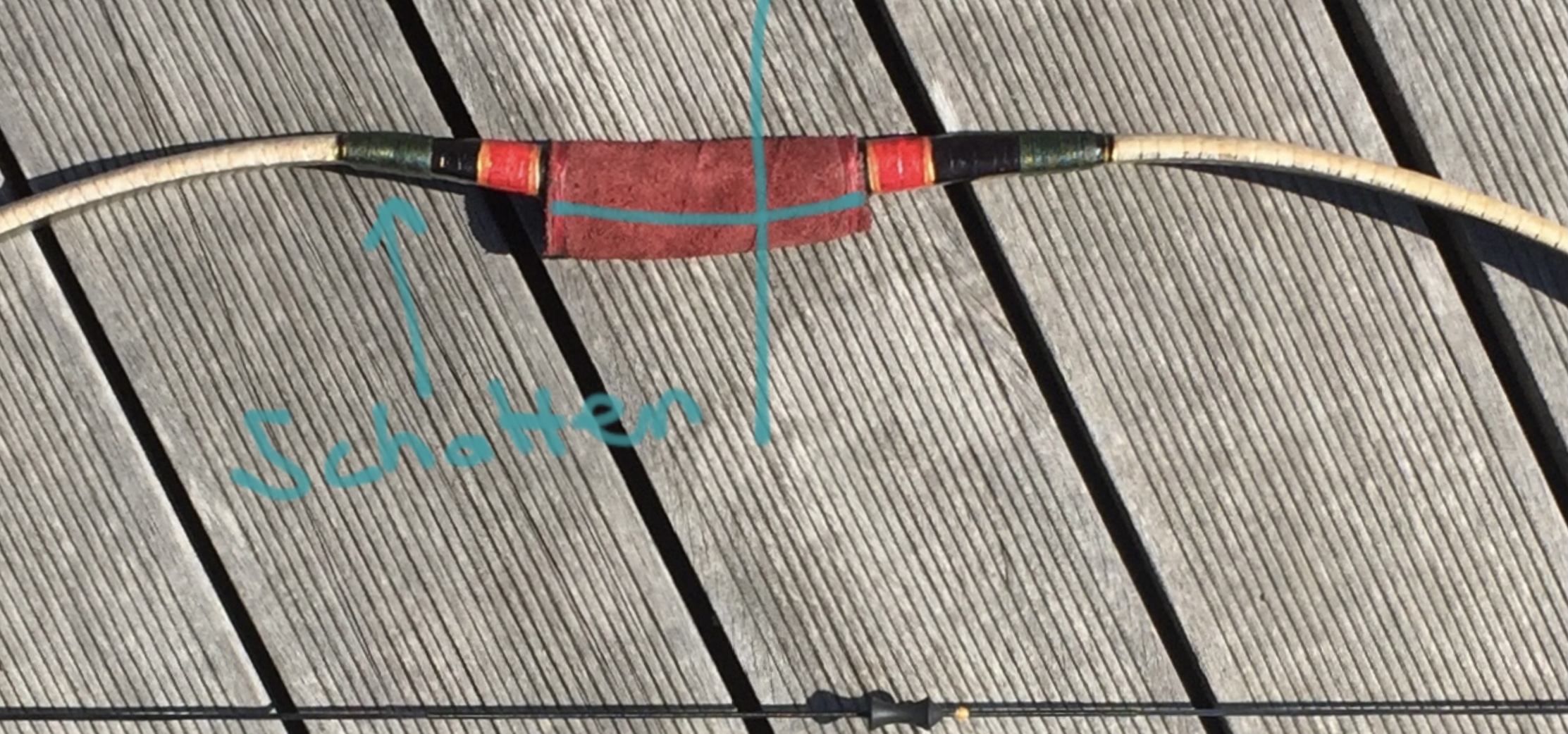 Ja der untere Wurfarm biegt griffnahe etwas mehr als der obere WE. Ist auch kürzer. Aber Knick ist keiner. Der Schatten und der Griff verstärken das im Bild, ist aber nicht ganz so schlimm, aber ich werde mich beim nächsten Bogen noch mehr bemühen. Der Griff ist Geschmacksache. Ich orientiere mich an den Originalbögen und da wird und wurde er so gebaut. Das Rohhautbacking ist halt ein super Schutz für die Sehnen, wasserfest verleimt auch ein Regenschutz. Ausgesprochen stabil, sodass Du mit dem Hammer drauf hauen kannst. Die Ziegenrohhaut, die ich verwende ist 0,2mm dick! Und 2 Streifen für einen Bogen wiegen 8 Gramm. Aber ich lerne gerne. Was würdet Ihr stattdessen verwenden?