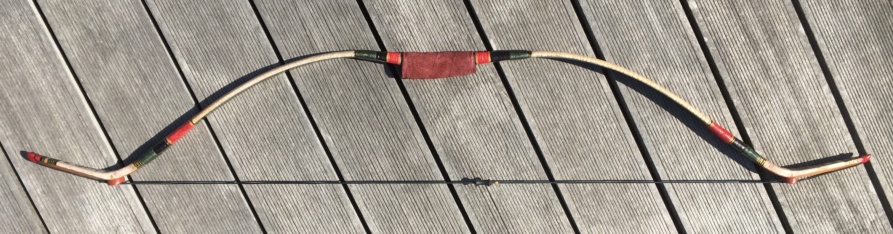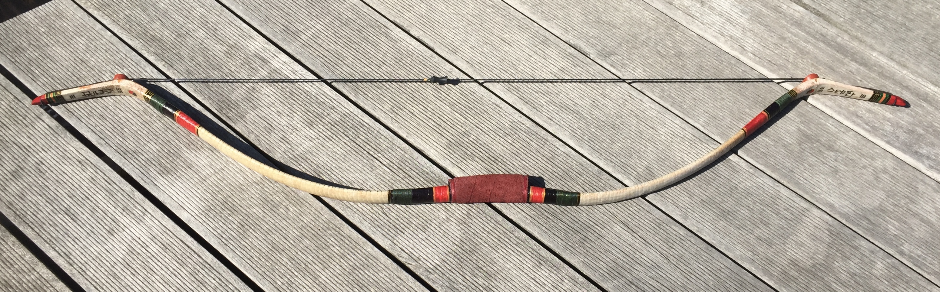 Soft corean style bow (weil mit weniger Reflex verklebt als die Originalbögen, dafür einfach mit der Durchsteigmethode aufzuspannen)