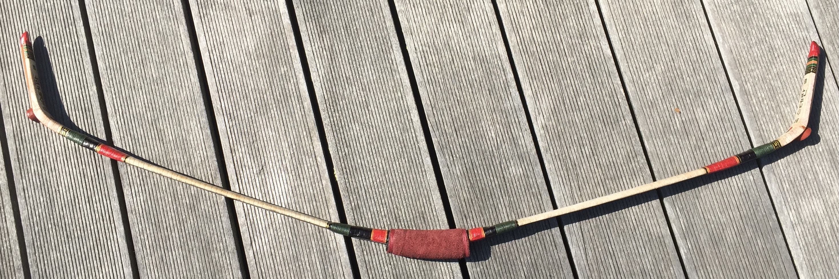 5 teilige Konstruktion: die Tips aus Eibe, die Wurfarme aus Bambus, der Griff aus Nussholz