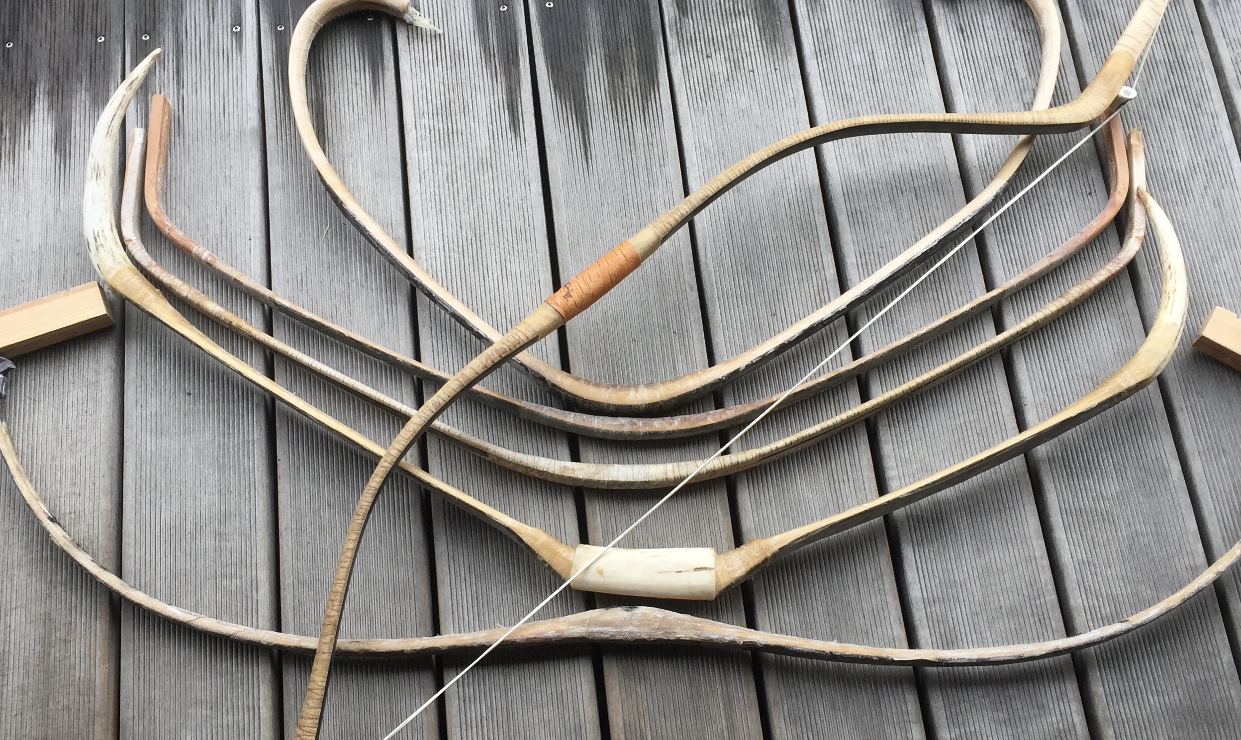 Das Rohhautbacking ist halt ein super Schutz für die Sehnen, wasserfest verleimt auch ein Regenschutz. Ausgesprochen stabil, sodass Du mit dem Hammer drauf hauen kannst. Die Ziegenrohhaut, die ich verwende ist 0,2mm dick! Und 2 Streifen für einen Bogen wiegen 8 Gramm. Aber ich lerne gerne. Was würdet Ihr stattdessen verwenden?
