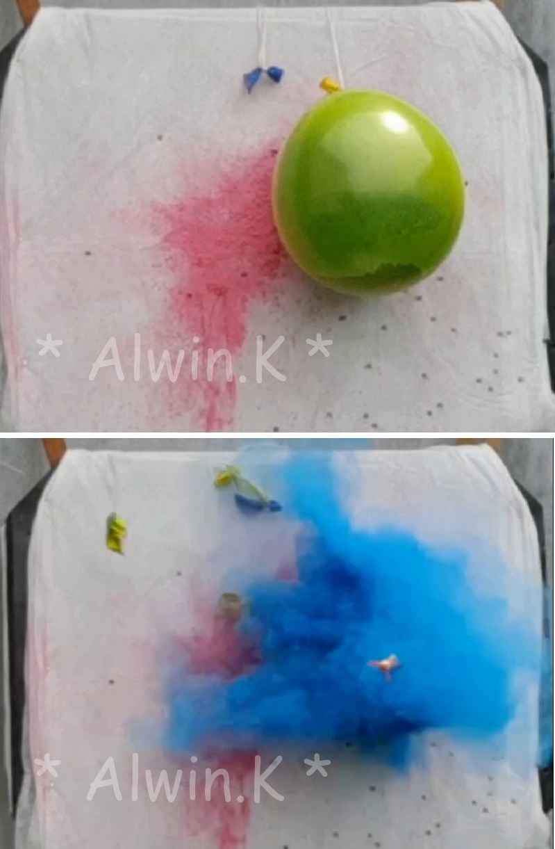 Die Wasser-Idee habe ich schon ausgeführt (was im Übrigen schöne Zeitlupe-Videosequenzen ergab). Aber wie bekommt man als Nichtraucher (Asthmatiker) Rauch in einen Ballon - denn auf Mehl würde ich wegen der Sauerei (meine Frau