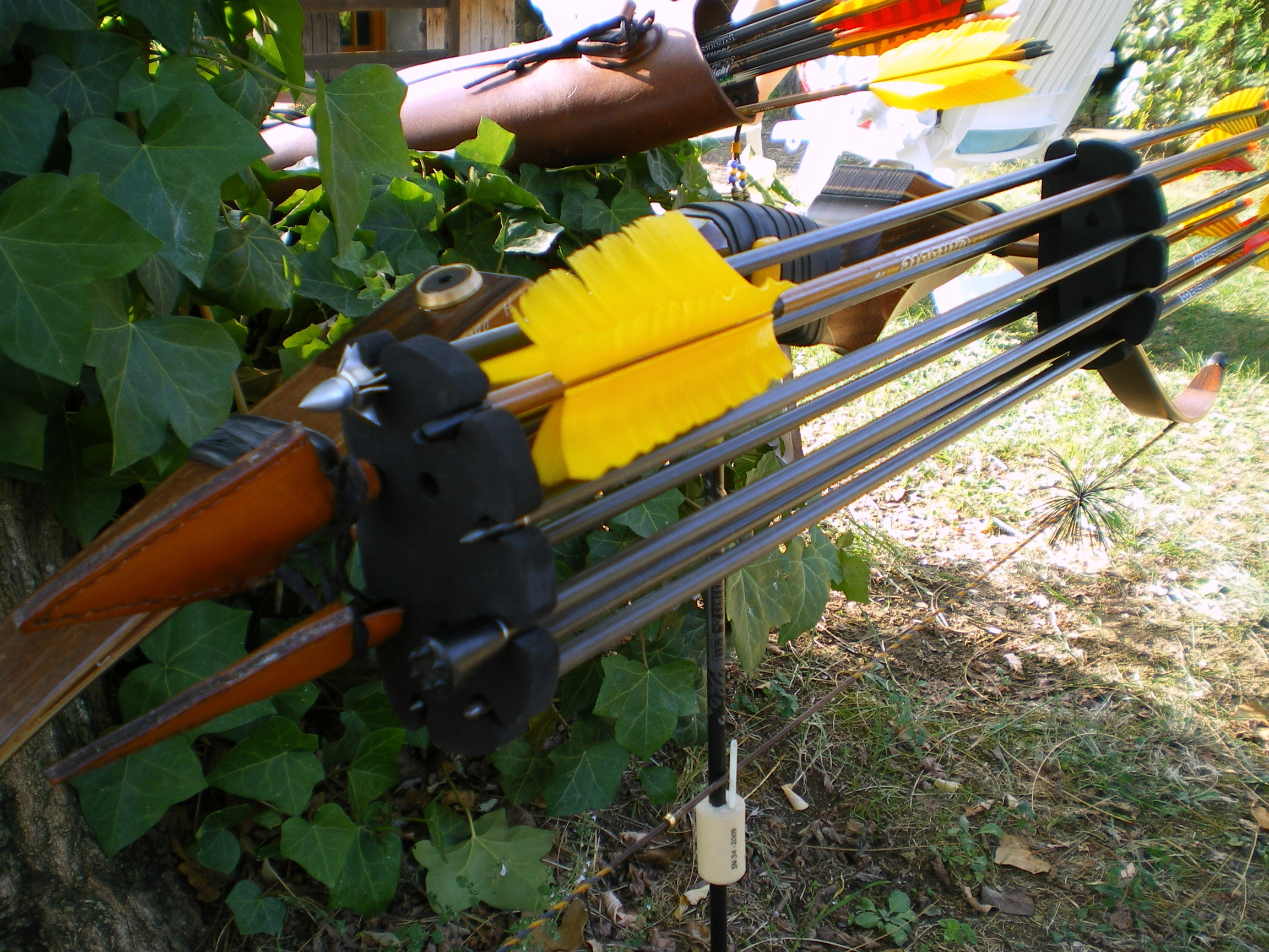 Die Pfeile in den Mittelbohrungen sind zur permanenten Nutzung ungeeignet, da sie relativ  straff im Köcher klemmen sollten. Ich verwende sie nur als Reservemunition z.B. beim Turnier.