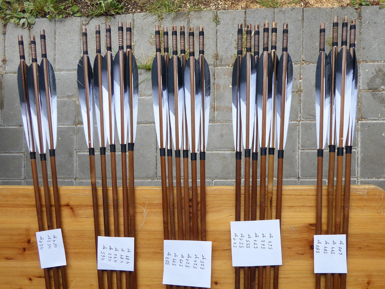 Die Pfeile nach Gewicht sortiert.