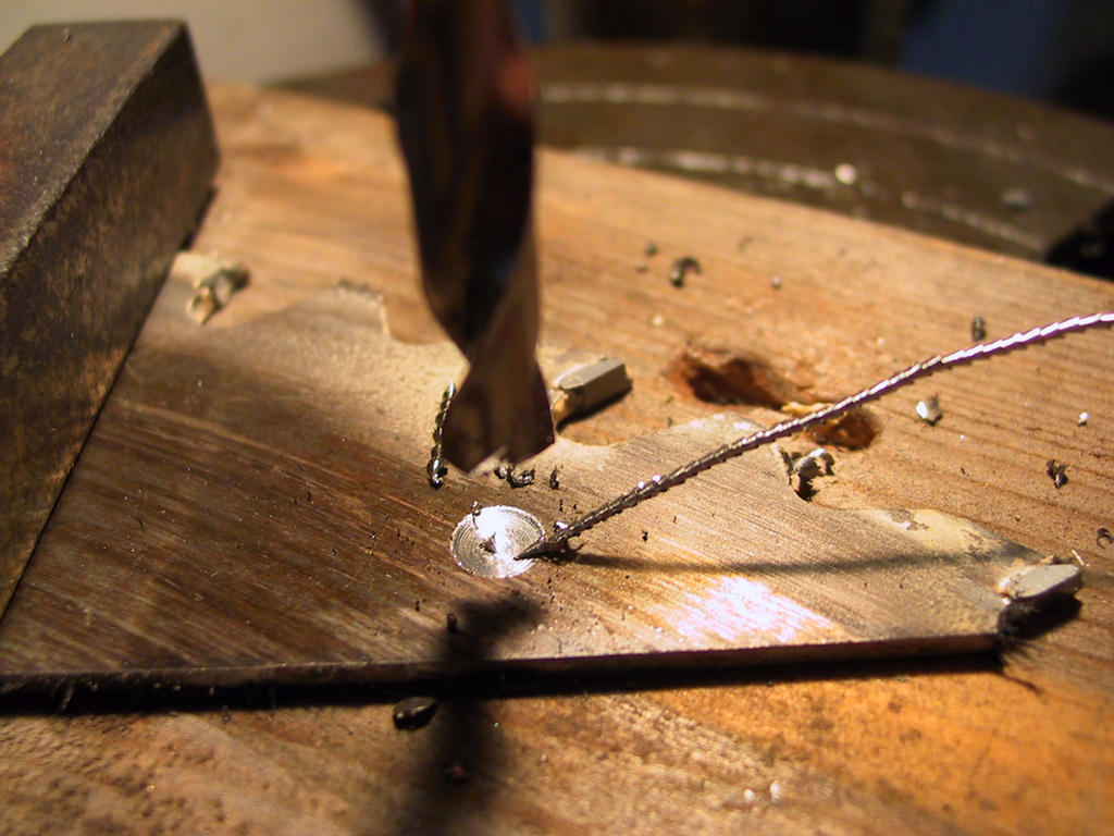 Dann werden die Ringe aufgeschlagen und die Löcher für die Erl gebohrt.