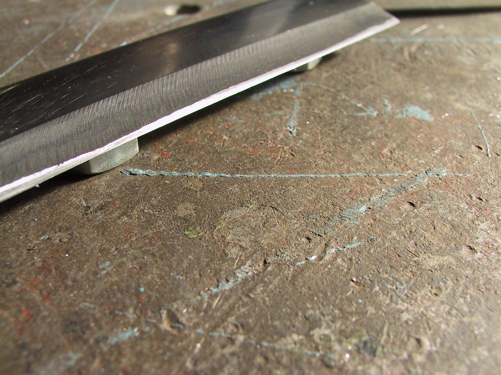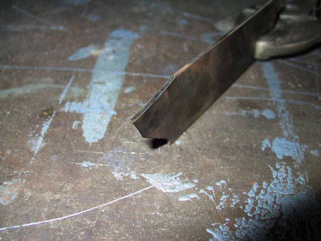 Laut Materialdatenblättern (siehe PDF) haben die Kreissägeblätter somit in der Regel ca. 43-49 HRC, können aber laut Anlaßtabelle bis zu 60HRC gehärtet werden. Die Härterei habe ich mir aber erspart und statt dessen mehr darauf acht gegeben, daß ich die ohnehin ganz gute Härte beim Schleifen nicht ruiniere. Daß es aber funktioniert, habe ich an einem Reststück (als Abstechstahl für die Drehbank) ausprobiert. Es wurde zumindest so hart, daß ich damit ohne weiteres Alu und Messing bearbeiten kann.