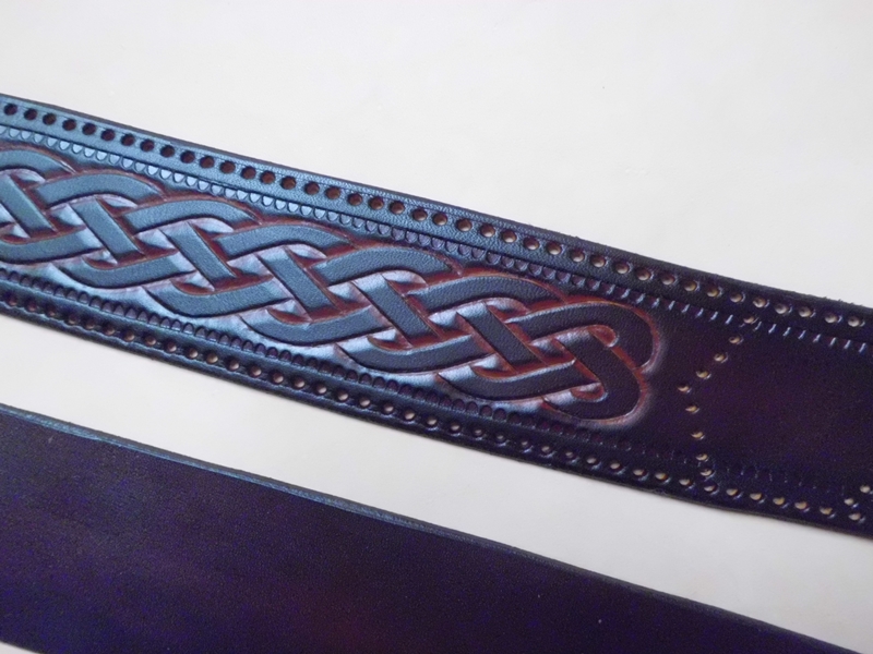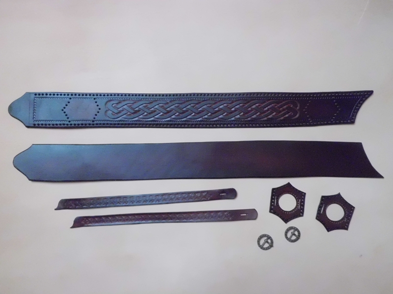 -Wenn das Leder kurz vorm trocknen ist kann die Umrandung entlang der eingeschnittenen Linien mit den Anschräger Werkzeugen (punzier Eisen) bearbeitet werden die Unebenheiten kann man dann noch mit einem glattem Holz Spatel oder Bein Spatel bearbeiten.