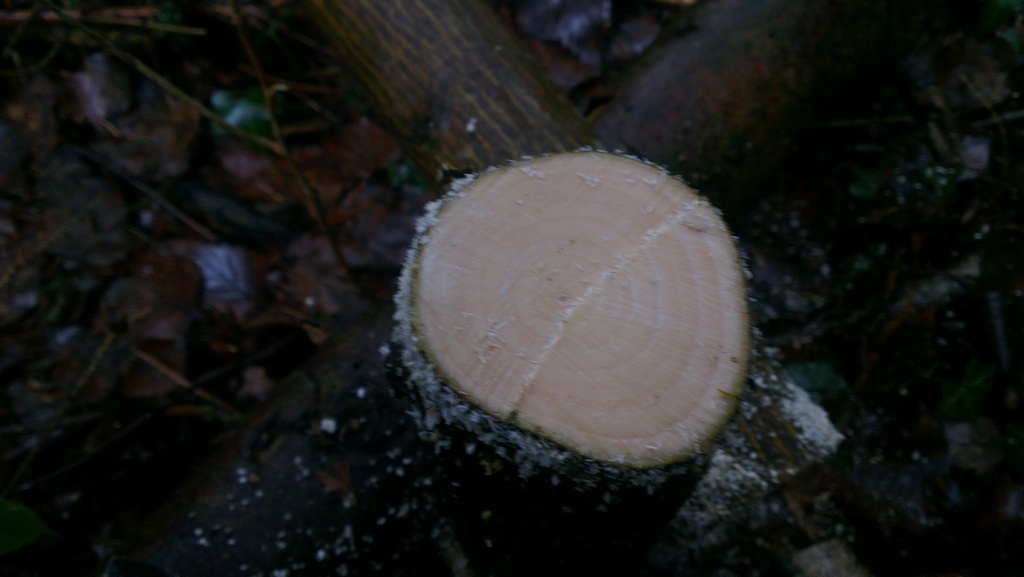 Das Kernholz ist leider nicht sehr vertrauenerweckend und wirkt eher morsch. Evt. muss ich das Kernholz komplett entfernen.