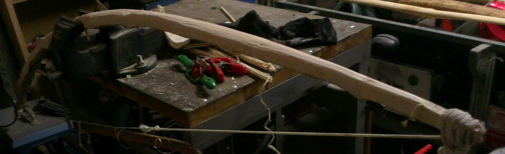 Um den einseitigen Reflex den der Stave mitbrachte anzugleichen, wurde der Wurfarm mit dem Schweifhobel angetillert und mit einem Gewicht beschwert. So kann der Stave nun trocknen.
