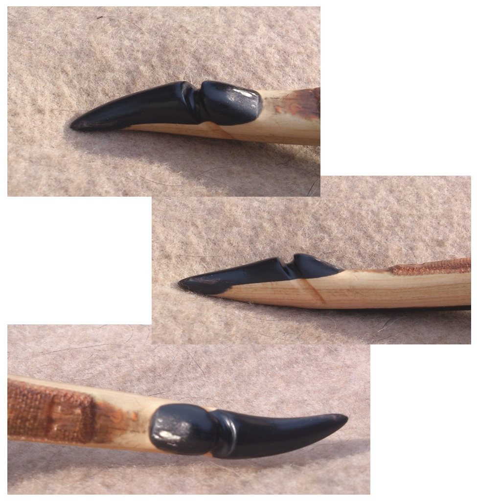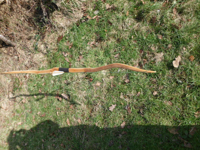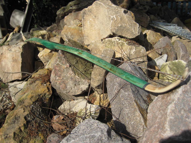 Der Bogen hat bisher etwa 150 Pfeile geworfen und ist nach dem Abspannen immer noch intakt. Etwas Set im unteren Wa an dessen reflexen Stellen etwas mehr und der Deflex oben ist ausgeprägter geworden.