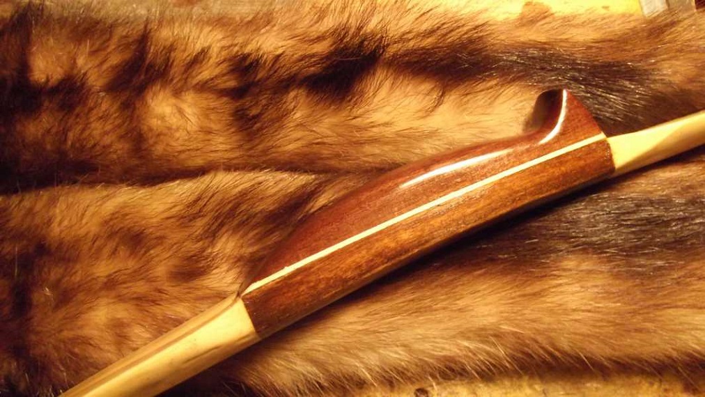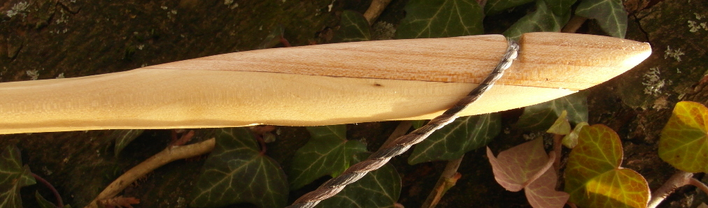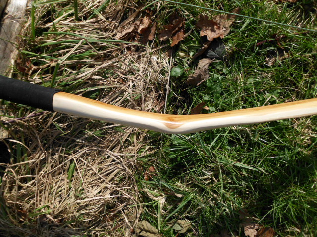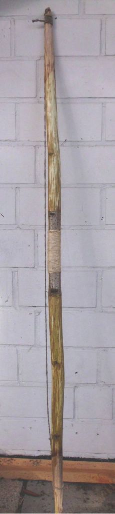 2. Länge N/N: 168 cm - Halbpyramide 38 mm auf 12 mm mit 10 mm auf 0 mm Trapping am Rücken aus 45 mm Sapling - 375 g (mit nassem Griffleder und Sehne)