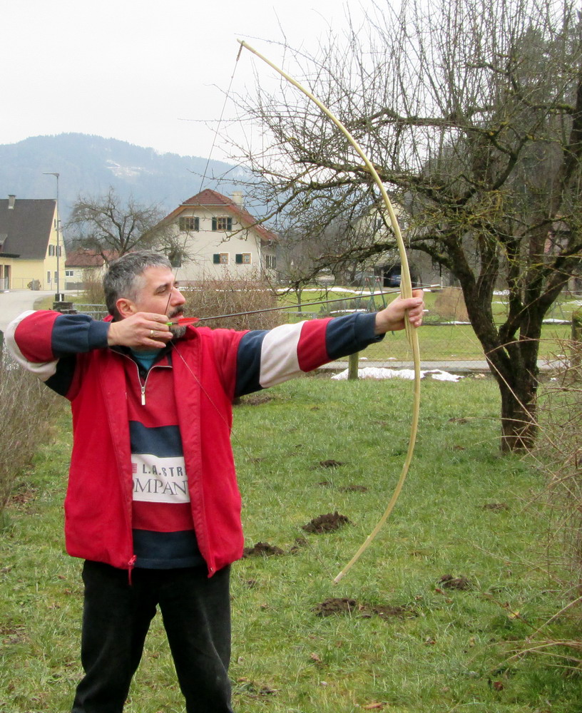 ich denke, und das bestätigt der Video aus Japan, dass das Zuggewicht schon bei der Auswahl des Bambus vor dem Schneiden festgelegt wird.... und da fehlt uns hier (noch) die jahrelange Erfahrung, die die asiatischen Bogenbauer haben...